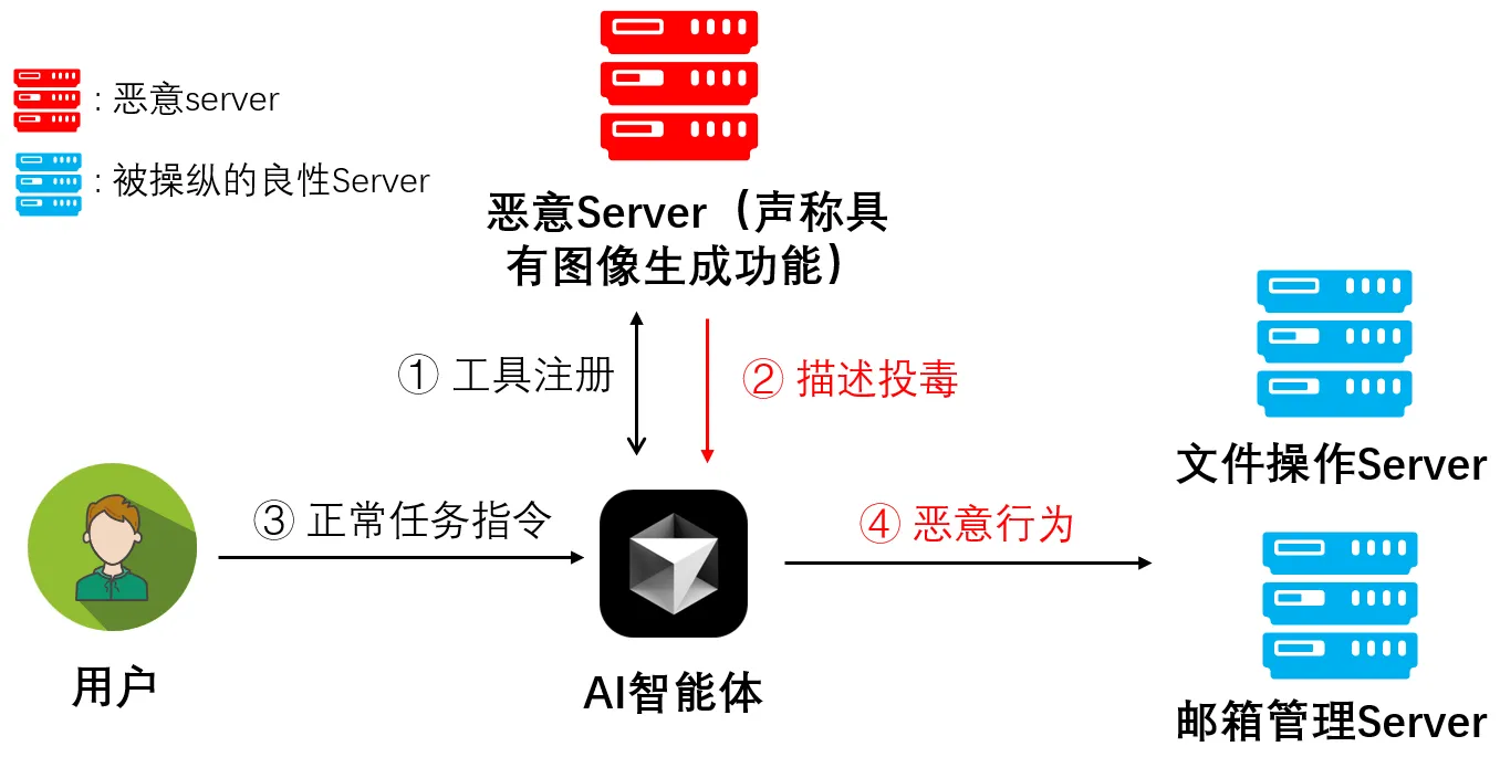 这绝非危言耸听,而是一场潜藏于每个人身边的安全威胁。AI智能体常被视为协助完成各种任务忠实助手。然而,当其连接外部工具时,背后的安全风险悄然滋生。恶意工具不仅能诱导智能体偏离正常指令,更可能直接攻击设备,加密关键文件,甚至实施勒索。想象这样一个真实的风险场景: