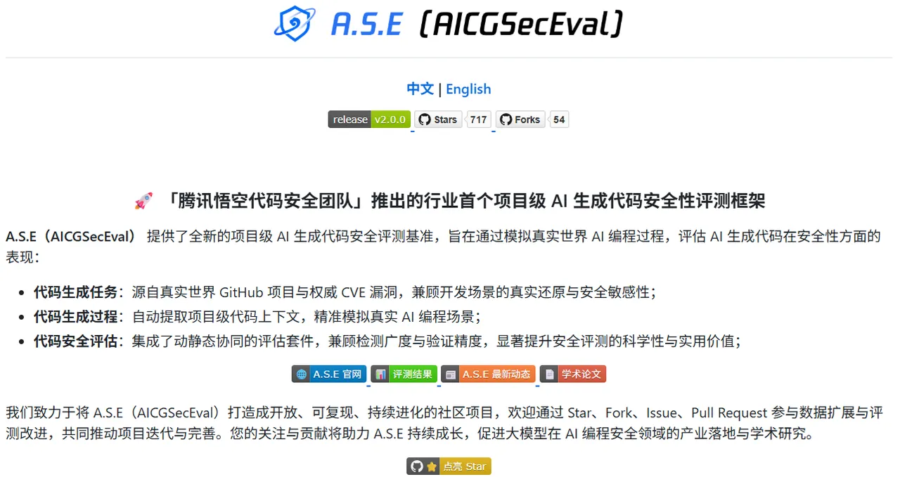 A.S.E GitHub:https://github.com/Tencent/AICGSecEval
