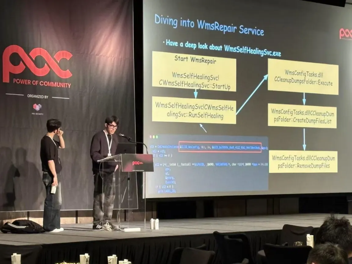 在会议上,白泽战队带来了一场聚焦 Windows 本地提权漏洞全链路构建与利用 的技术分享。该议题深入剖析了如何从底层服务错误逻辑机制入手,系统构建完整的 Local Privilege Escalation(本地权限提升) 攻击链,在真实 Windows 环境中实现从漏洞触发到权限上升的端到端流程,这对于理解现代操作系统安全边界、攻防技术设计具有重要意义。